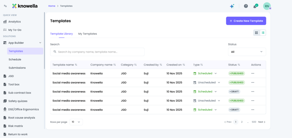 Deleting a template allows you to remove unused or outdated forms from the system. This helps keep your App Builder organized and ensures users only see relevant templates.
